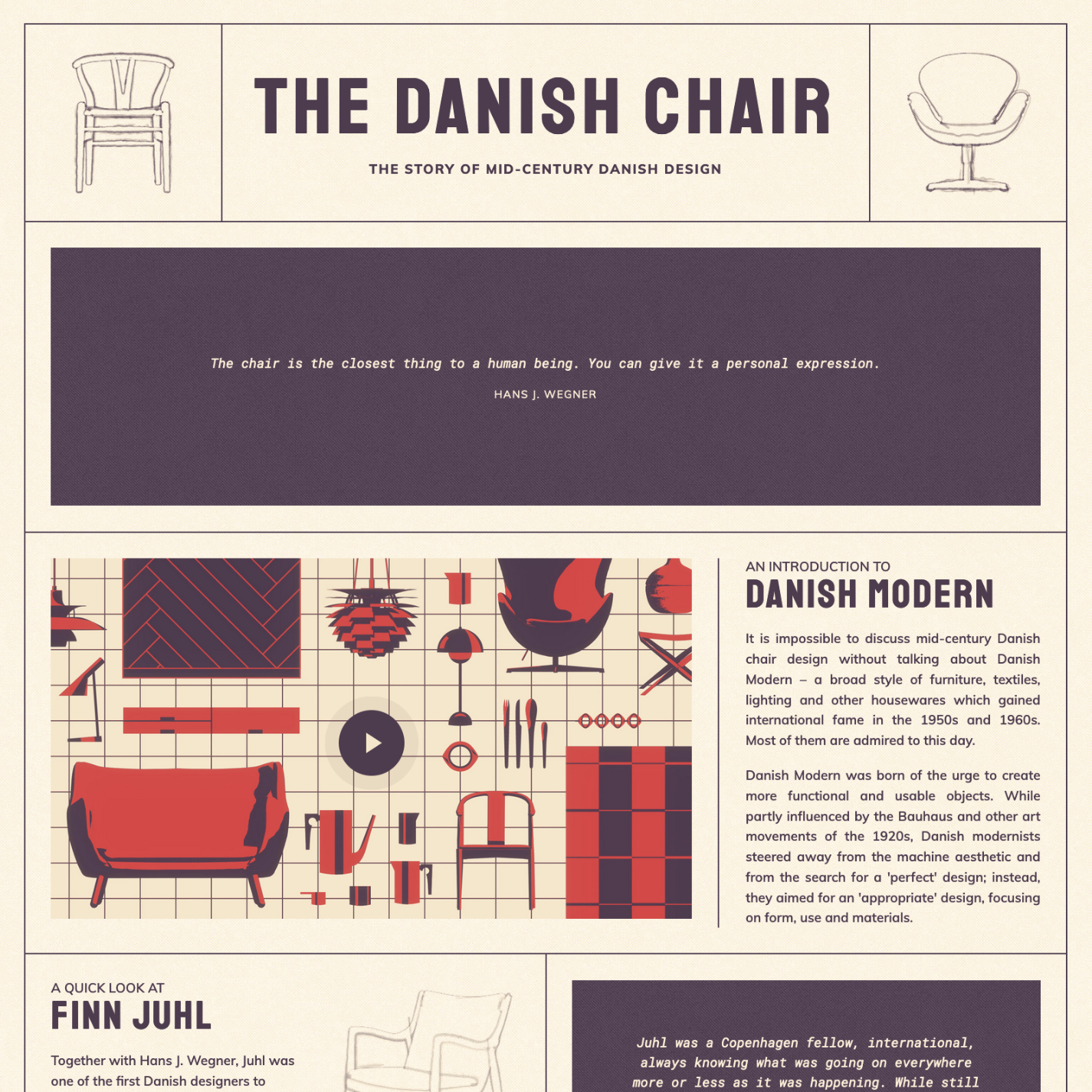 The Danish Chair is an ode to mid-century danish design. Marius Vaitkevicius introduces us to Danish Modern in three beautiful animated videos. What a great way to showcase his abilities as a motion designer!